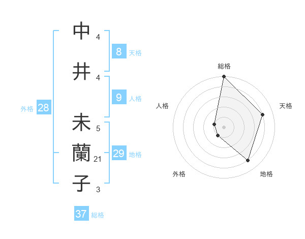 中井 未蘭子さんを姓名の画数から五運を鑑定