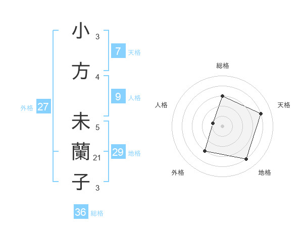 小方 未蘭子さんの外格は27画の3点!
