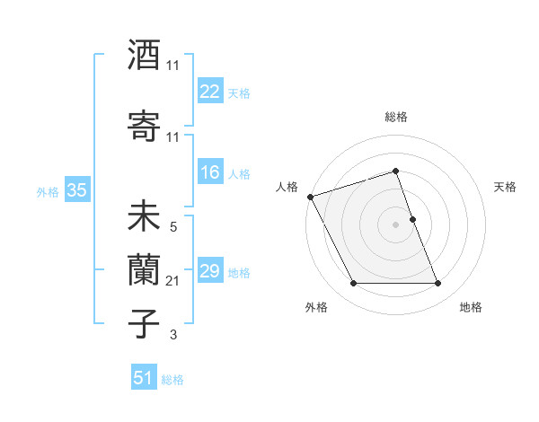 酒寄 未蘭子さんを姓名の画数から五運を鑑定