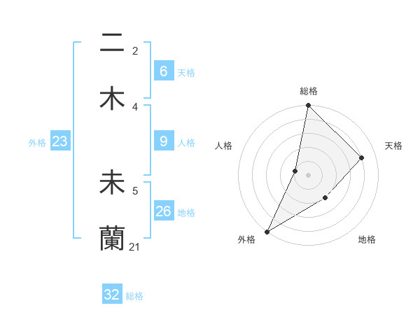 二木 未蘭さんを姓名の画数から五運を鑑定