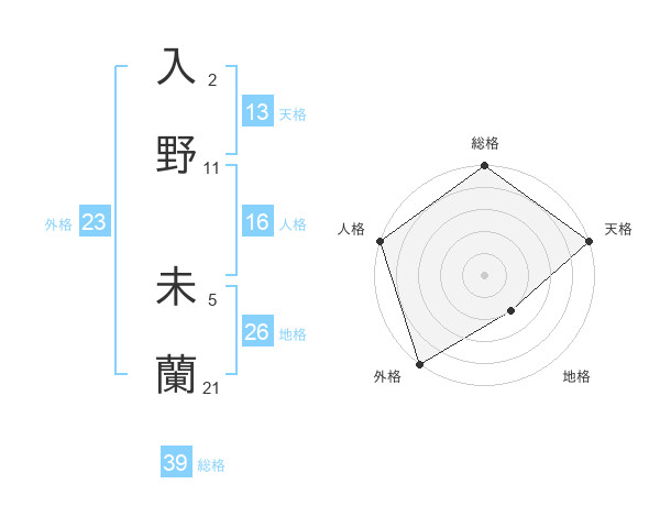 入野 未蘭さんを姓名の画数から五運を鑑定