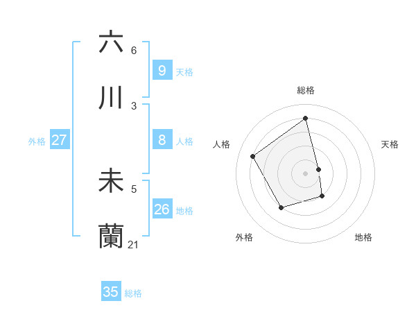 六川 未蘭さんを姓名の画数から五運を鑑定