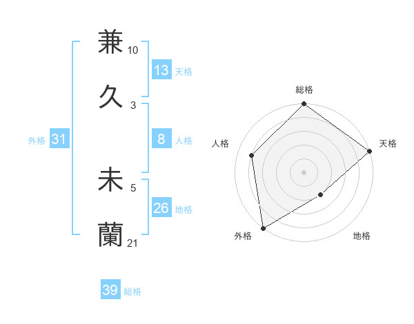 兼久 未蘭さんの総格は39画の5点!
