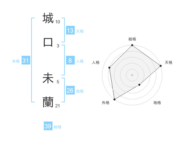 城口 未蘭さんの総格は39画の5点!