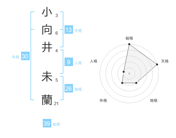 小向井 未蘭さんの天格は13画の5点!