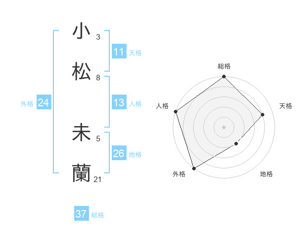 小松 未蘭さんの総格は37画の5点!
