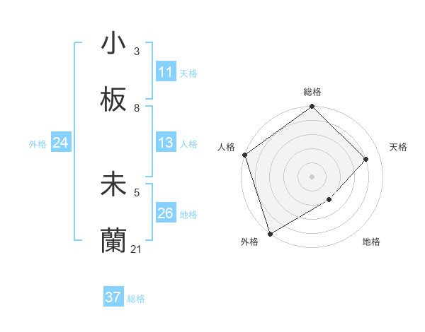 小板 未蘭さんの総格は37画の5点!