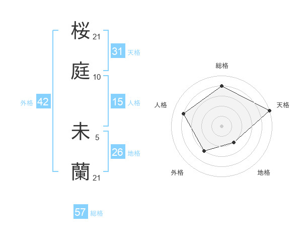 桜庭 未蘭さんの総格は57画の4点!