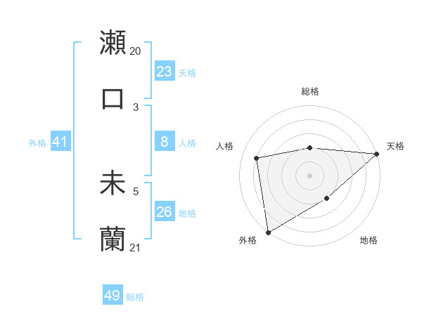 瀬口 未蘭さんの天格は23画の5点!