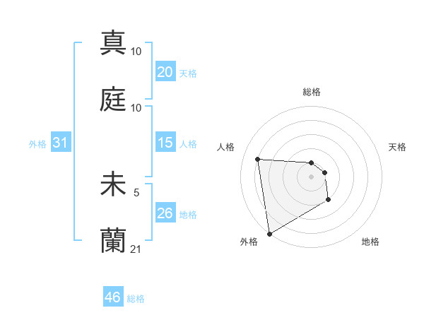 真庭 未蘭さんの外格は31画の5点!