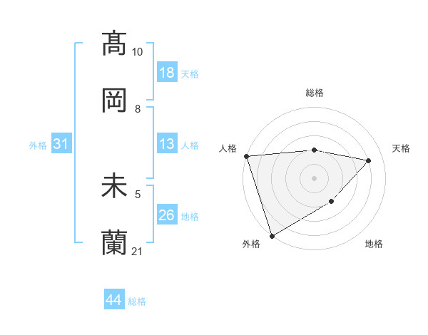 髙岡 未蘭さんの総格は44画の2点!