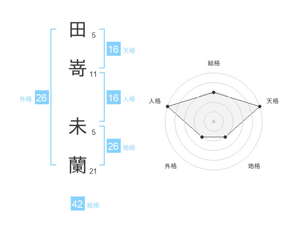 田嵜 未蘭さんの天格は16画の5点!