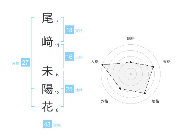 尾﨑 未陽花さんを姓名の画数から五運を鑑定
