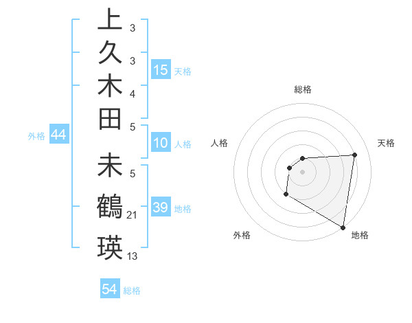 上久木田 未鶴瑛さんの天格は15画の4点!