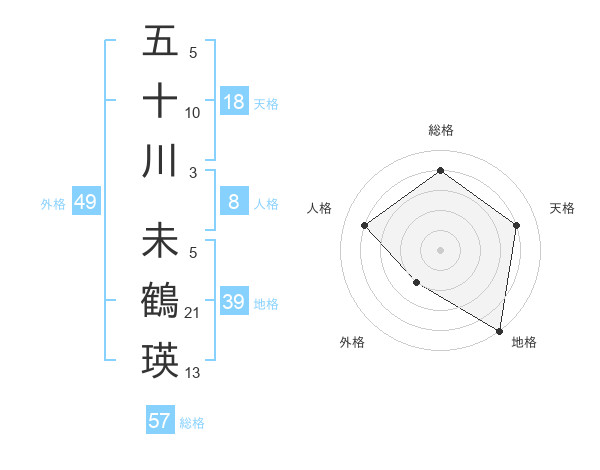五十川 未鶴瑛さんを姓名の画数から五運を鑑定