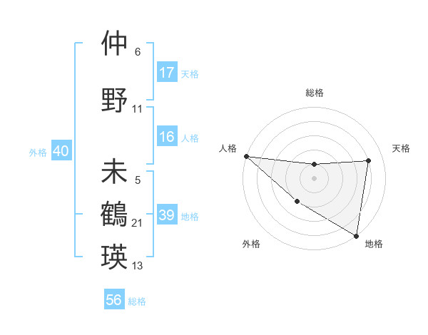 仲野 未鶴瑛さんを姓名の画数から五運を鑑定