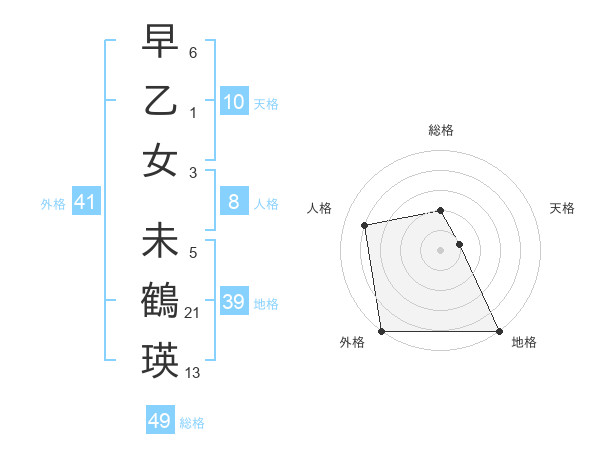早乙女 未鶴瑛さんの総格は49画の2点!