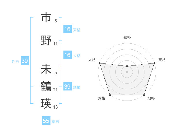 市野 未鶴瑛さんを姓名の画数から五運を鑑定