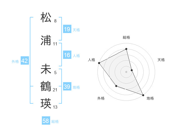 松浦 未鶴瑛さんを姓名の画数から五運を鑑定