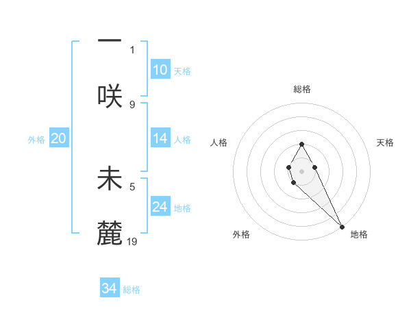 一咲 未麓さんの総格は34画の2点!