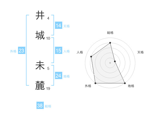 井城 未麓さんの総格は38画の4点!