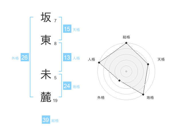 坂東 未麓さんの総格は39画の5点!