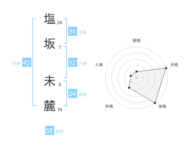 塩坂 未麓さんの総格は55画の1点!