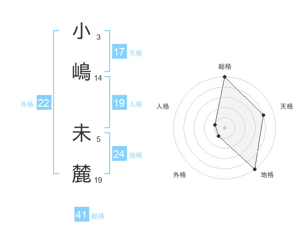 小嶋 未麓さんを姓名の画数から五運を鑑定