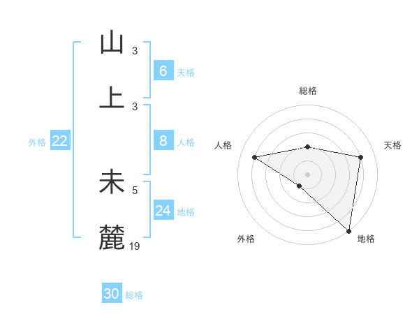 山上 未麓さんの総格は30画の2点!