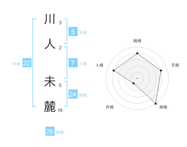 川人 未麓さんの外格は22画の1点!