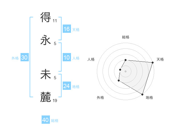 得永 未麓さんの天格は16画の5点!