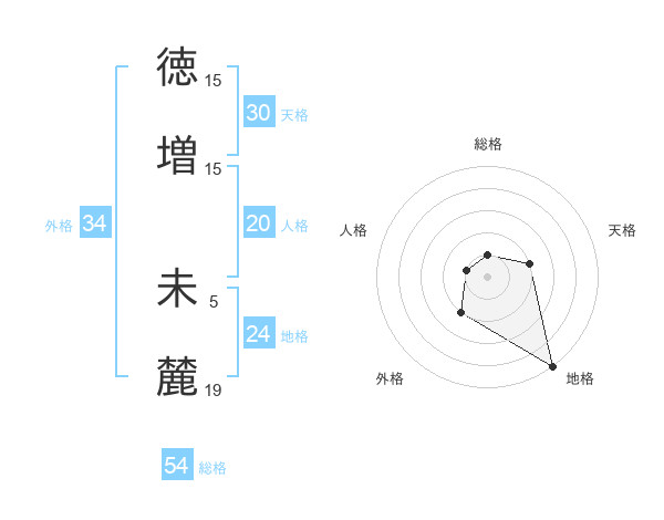 徳増 未麓さんの外格は34画の2点!
