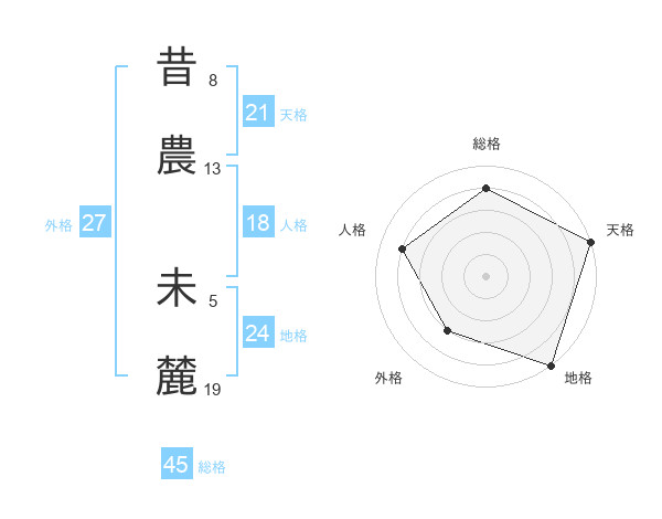 昔農 未麓さんを姓名の画数から五運を鑑定