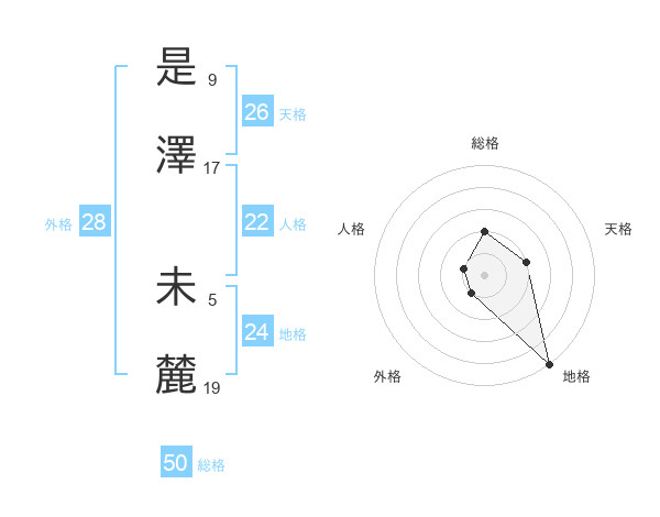 是澤 未麓さんの総格は50画の2点!