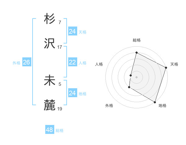 杉沢 未麓さんを姓名の画数から五運を鑑定
