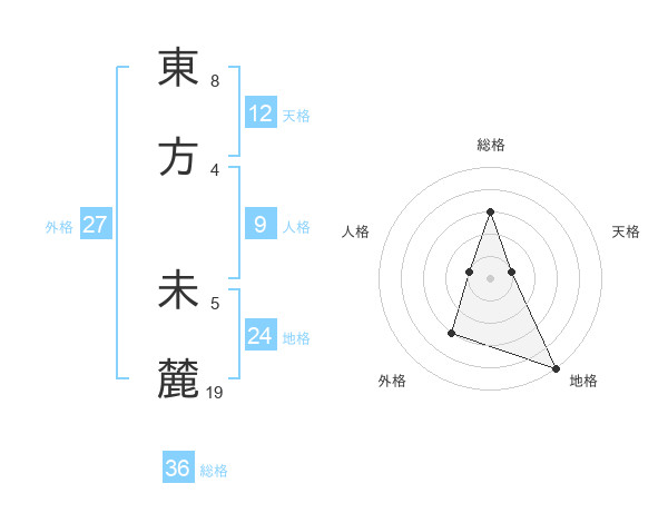 東方 未麓さんの天格は12画の1点!