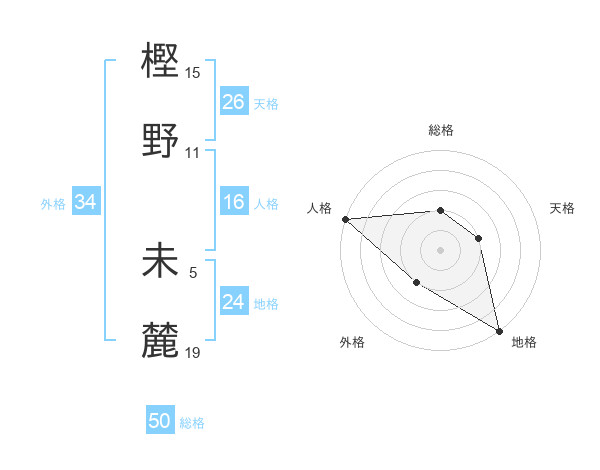 樫野 未麓さんの総格は50画の2点!