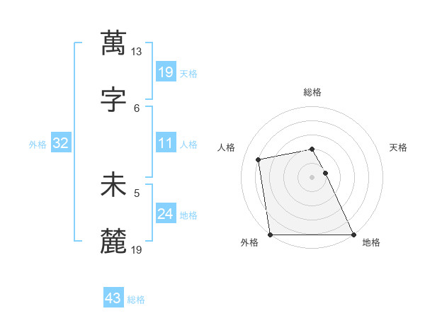 萬字 未麓さんを姓名の画数から五運を鑑定