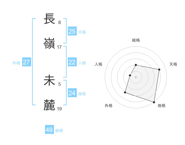 長嶺 未麓さんの総格は49画の2点!