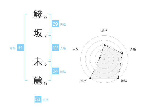 鰺坂 未麓さんの総格は53画の3点!
