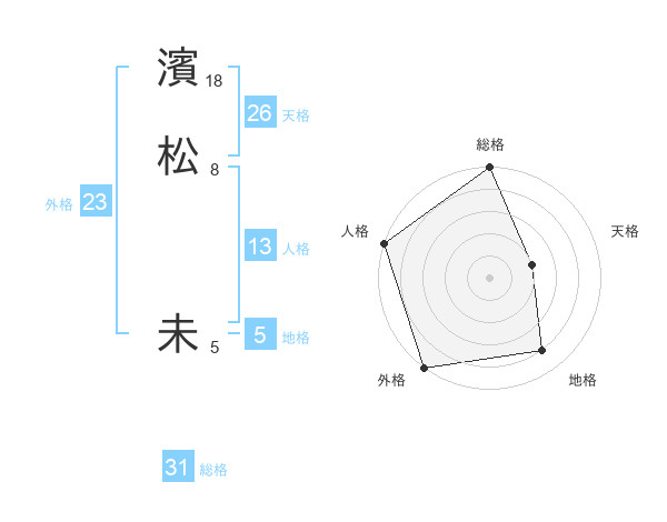 濱松 未さんの外格は23画の5点!