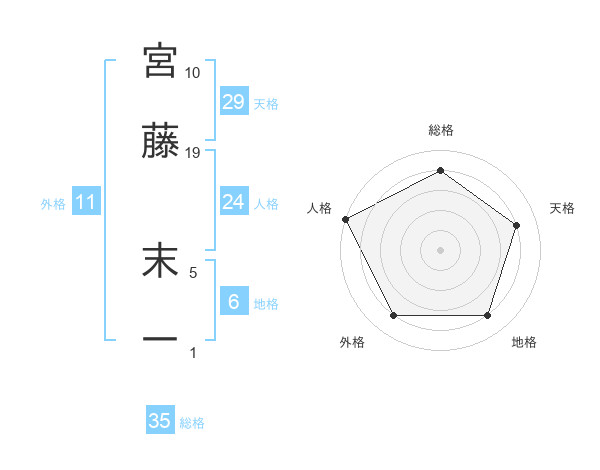 宮藤 末一さんを姓名の画数から五運を鑑定
