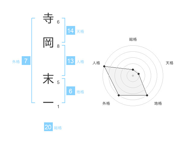 寺岡 末一さんの総格は20画の1点!