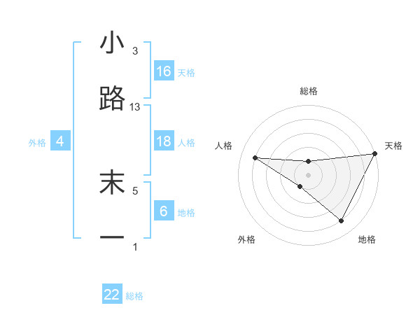 小路 末一さんの総格は22画の1点!