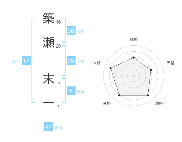 築瀬 末一さんの総格は42画の3点!