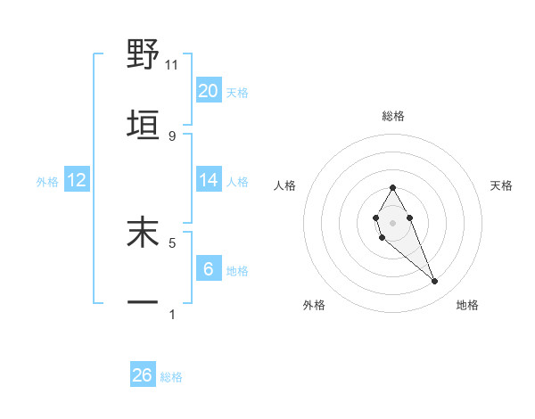 野垣 末一さんの総格は26画の2点!