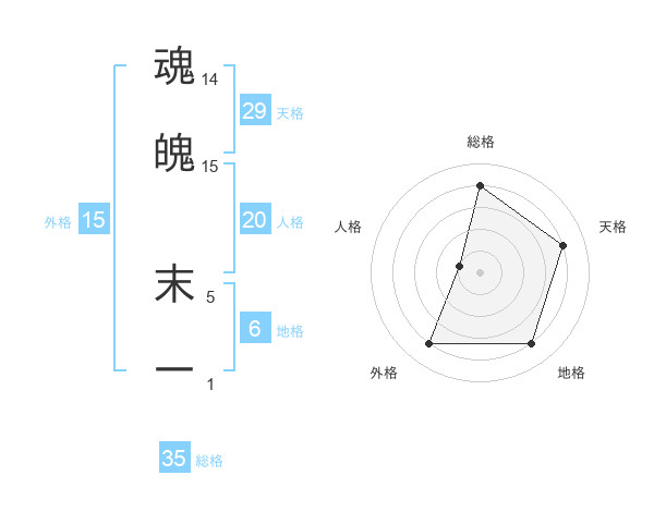 魂魄 末一さんの総格は35画の4点!
