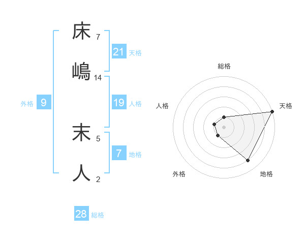 床嶋 末人さんを姓名の画数から五運を鑑定