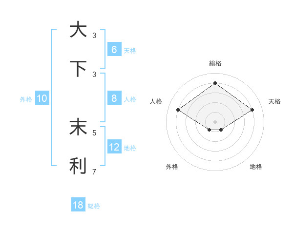 大下 末利さんの総格は18画の4点!