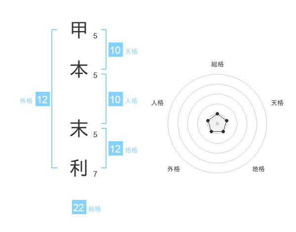 甲本 末利さんの総格は22画の1点!